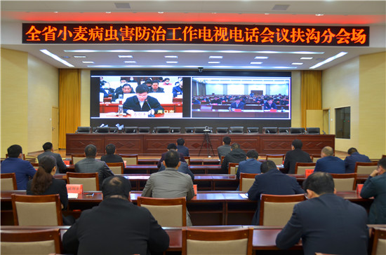 3月31日上午,全省小麦病虫害防治工作电视电话会议召开,分析研判小麦条锈病、赤霉病、“倒春寒”的发生趋势,安排部署小麦病虫害和“倒春寒”危害。扶沟县长崔卫国、副县长刘记及各乡镇(街道办)、相关部门主要负责同志在扶沟分会场收听收看会议实况。