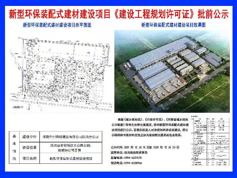 新型环保装配式建材建设项目《建设工程规划许可证》批前公示
