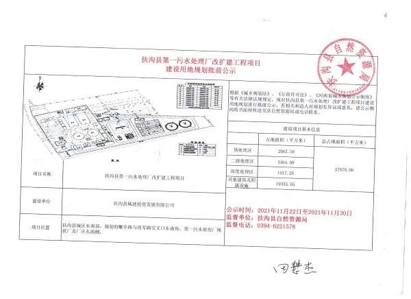 扶沟县第一污水处理厂改扩建工程项目建设用地规划批前公示