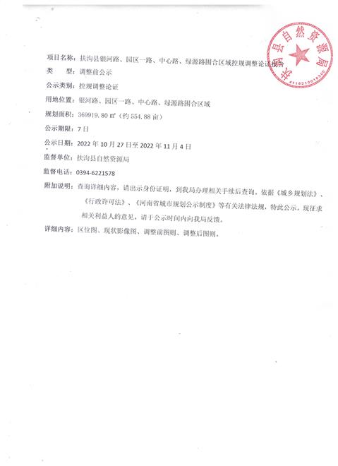 扶沟县银河路、园区一路、中心路、绿源路围合区域控规调整论证报告