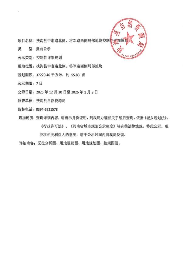 扶沟县中泰路北侧、将军路西侧局部地块控制性详细规划