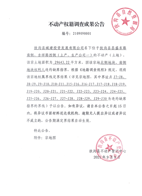 不动产权籍调查成果公告、编号:2109090001