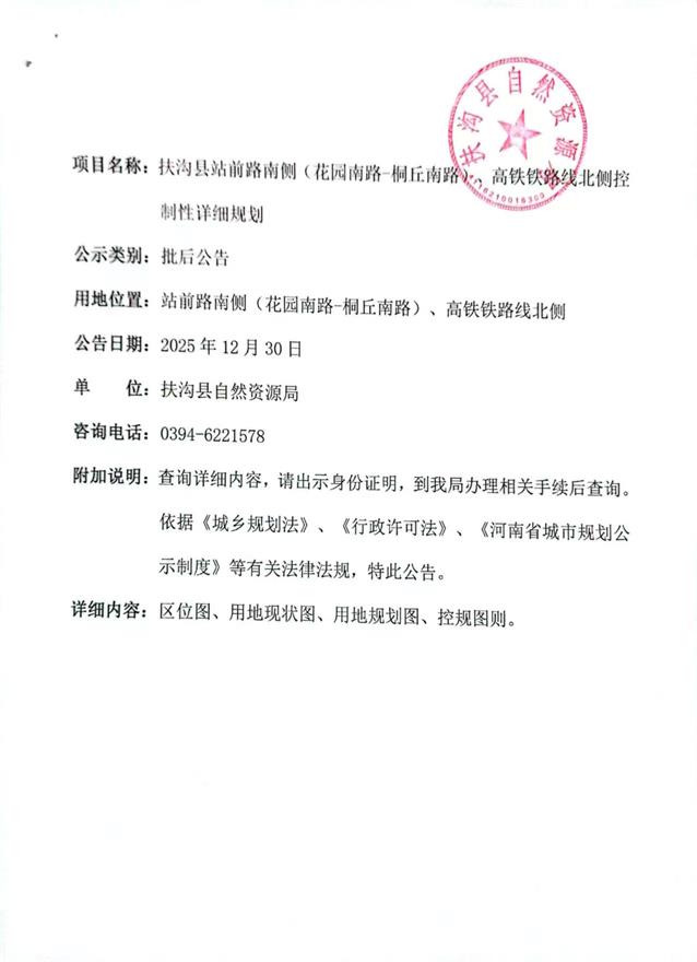 扶沟县站前路南侧(花园南路-桐丘南路)、高铁铁路线北侧控制性详细规划