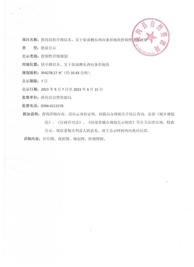 扶沟县扶亭路以东、吴干渠南侧东西向条形地块控制详细规划