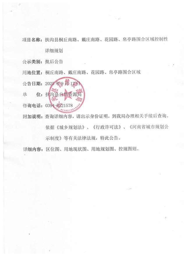 扶沟县桐丘南路、戴庄南路、花园路、帛亭路围合区域控制性详细规划