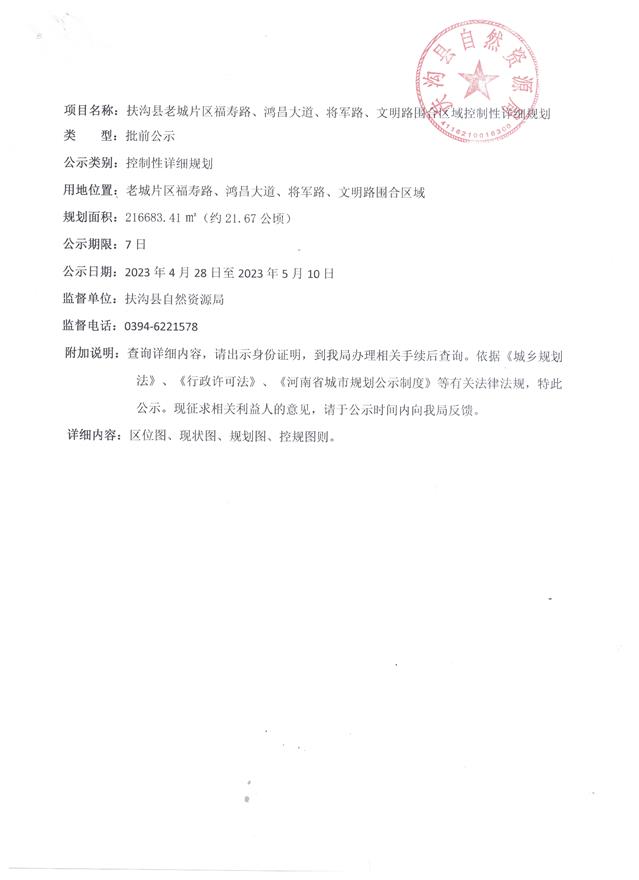 扶沟县老城片区福寿路、鸿昌大道、将军路、文明路围合区域控制性详细规划