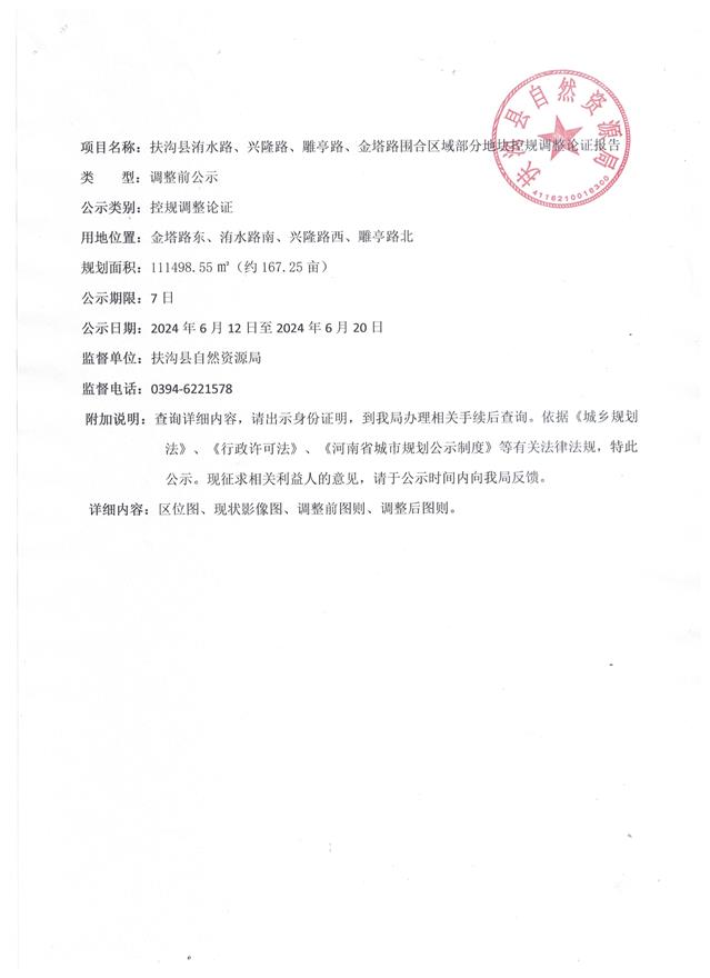 扶沟县洧水路、兴隆路、雕亭路、金塔路围合区域部分地块控规调整论证报告