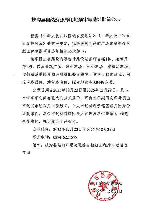 扶沟县自然资源局用地预审与选址批前公示
