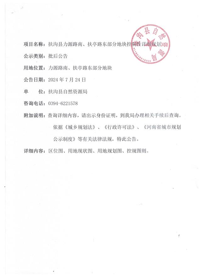 扶沟县力源路、扶亭路东部分地块控制性详细规划