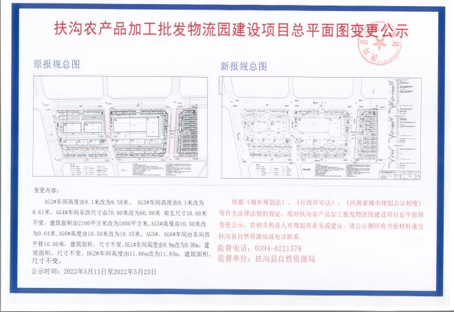扶沟农产品加工批发物流园建设项目总平面图变更公示